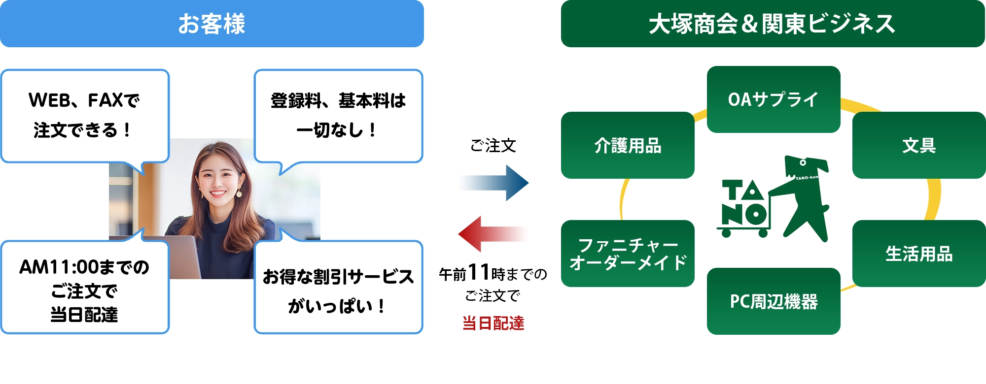 「たのめーる」は、コピー用紙からトナーなどの消耗品から文具、オフィスサプライを迅速にお届けする通販サービスです。 また、名刺などの印刷物、生活用品、介護用品など幅広いラインナップで、法人・個人を問わずあらゆるお客様の「今、ほしい」に応えます。